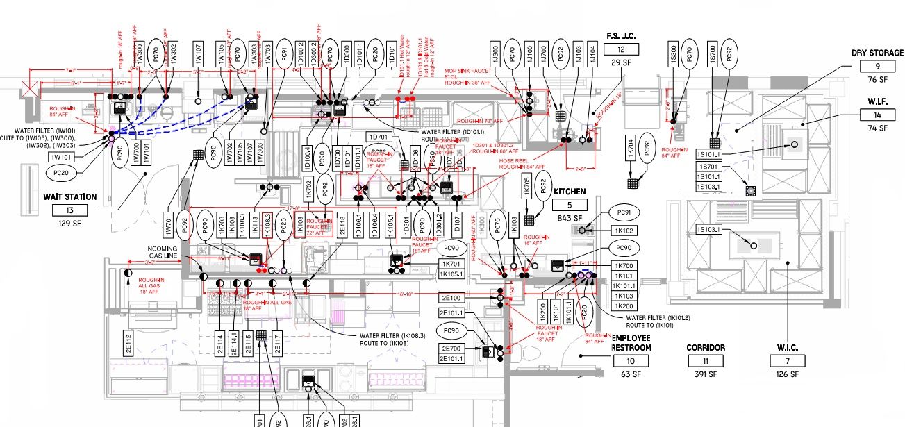 - Equipment Floor Plans and Dimensioned Rough ins for Electric and Plumbing & any chase drawings (soda runs, refrigerant runs, beer lines, etc). See section 11 below for further requirements on this submittal.